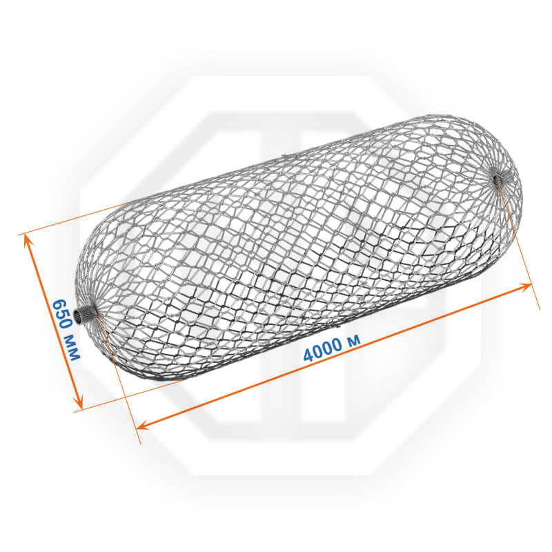 Габион цилиндрический 4х0,65х1,32 оцинкованный / ЦП, Ø проволоки 2,7/3,7мм, размер ячейки 8х10 см м.