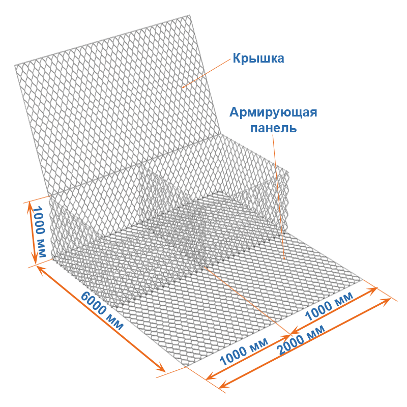 Габион с армопанелью 6x2x1 – это конструкция, состоящая из сетки двойного кручения. Она состоит из основной части (коробчатого габиона) и армирующей панели. Армирующая панель – это продолжение основания габиона и является неотъемлемой его частью.